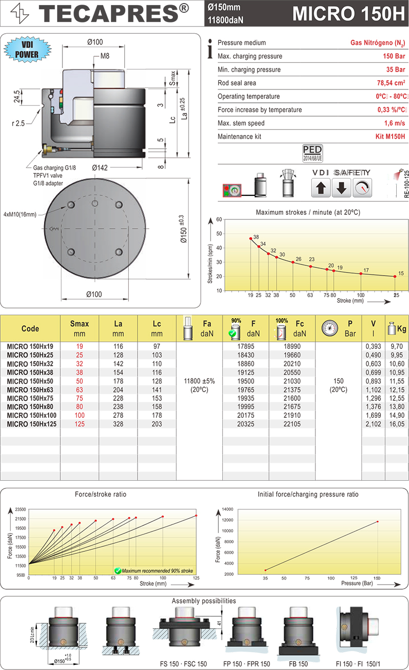 产品参数选购 TECAPRES 氮气弹簧 MICRO 150H