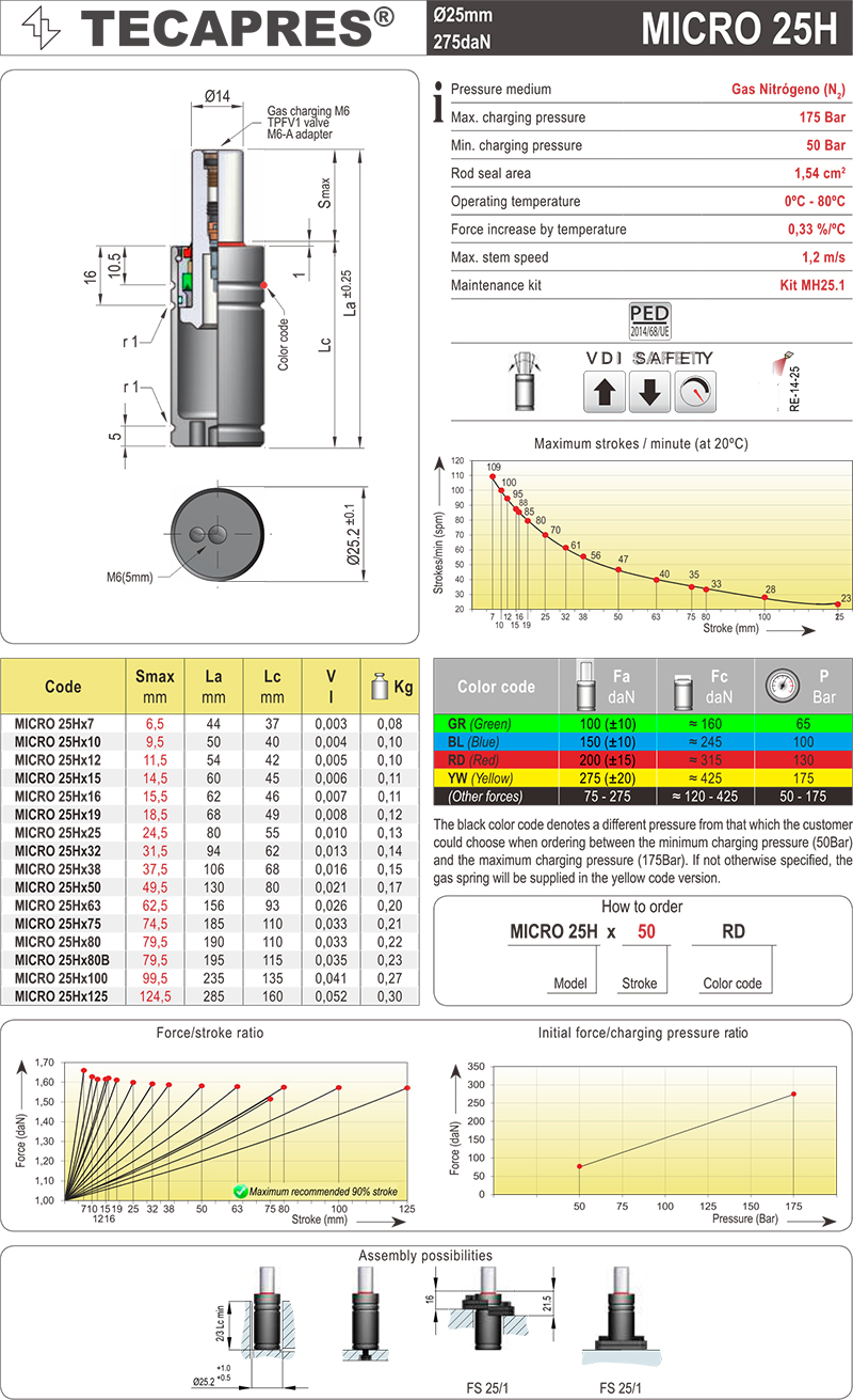 产品参数选购 TECAPRES 氮气弹簧 MICRO 25H