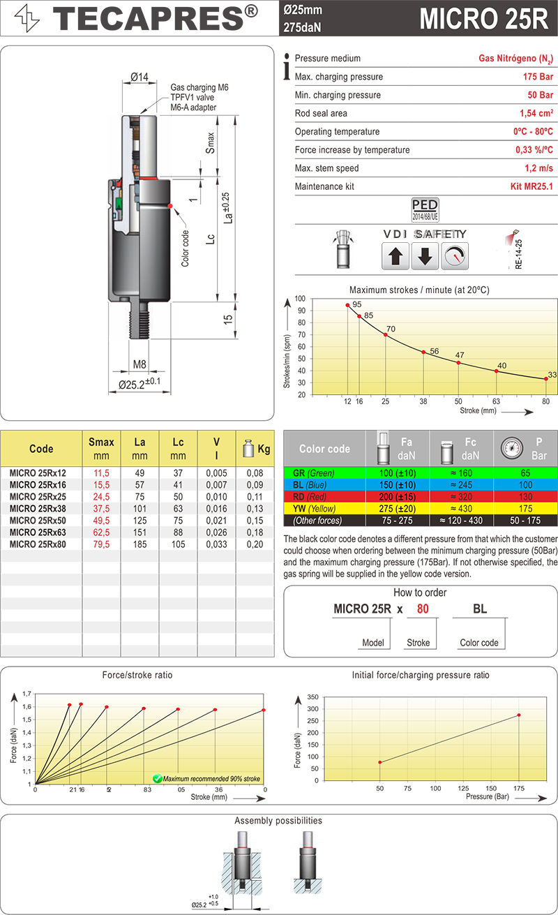TECAPRES 氮气弹簧 MICRO 25R