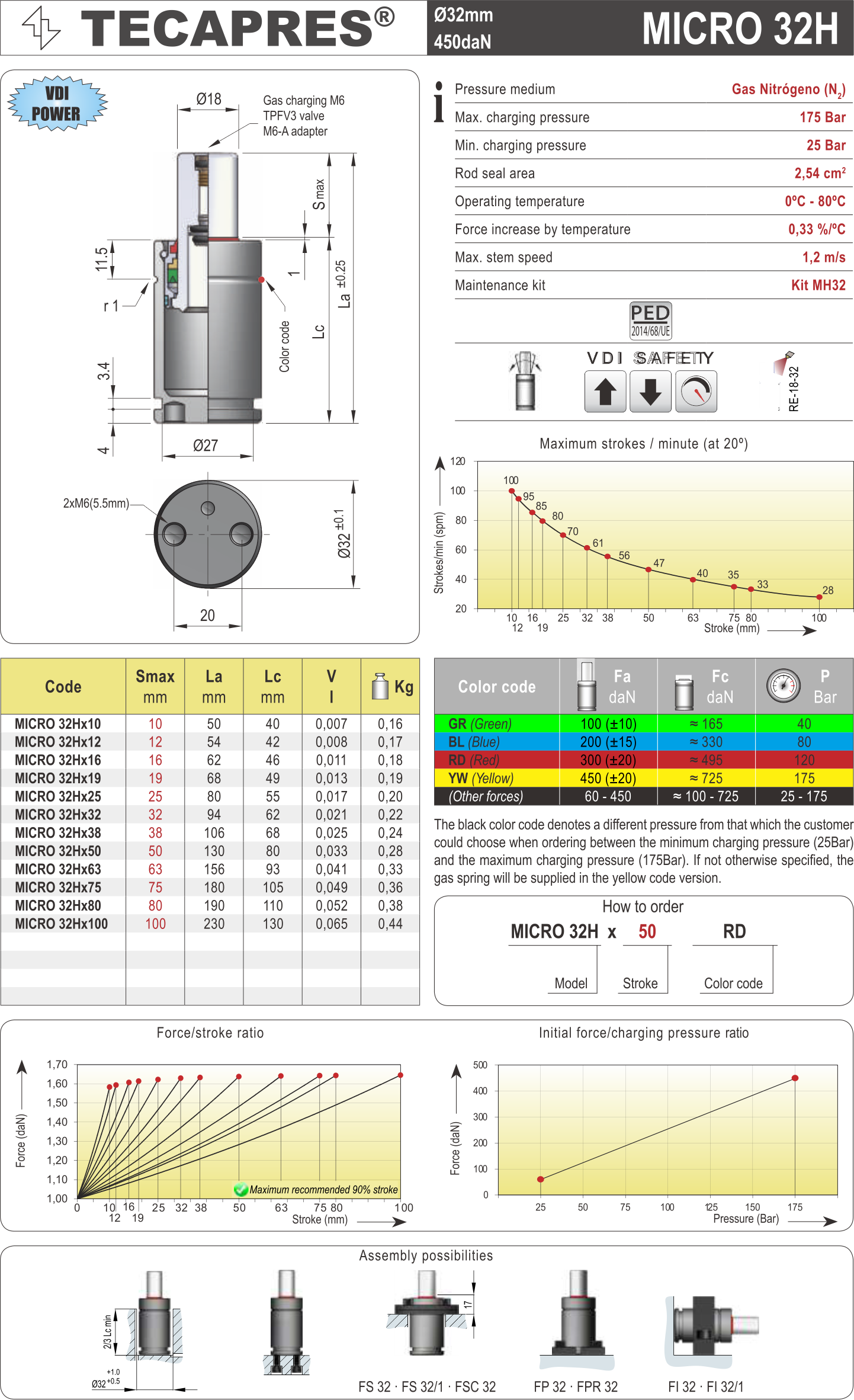 产品参数选购 TECAPRES 氮气弹簧 MICRO 32H