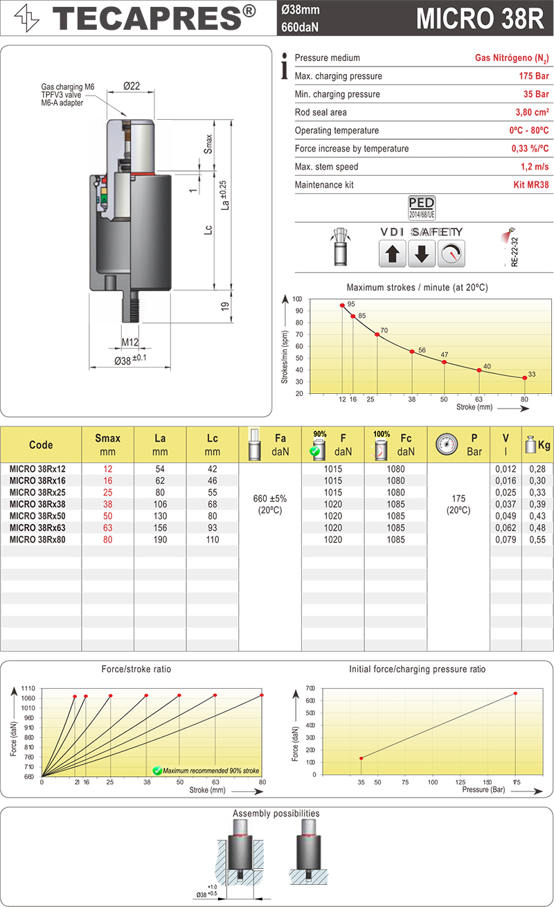 TECAPRES 氮气弹簧 MICRO 38R