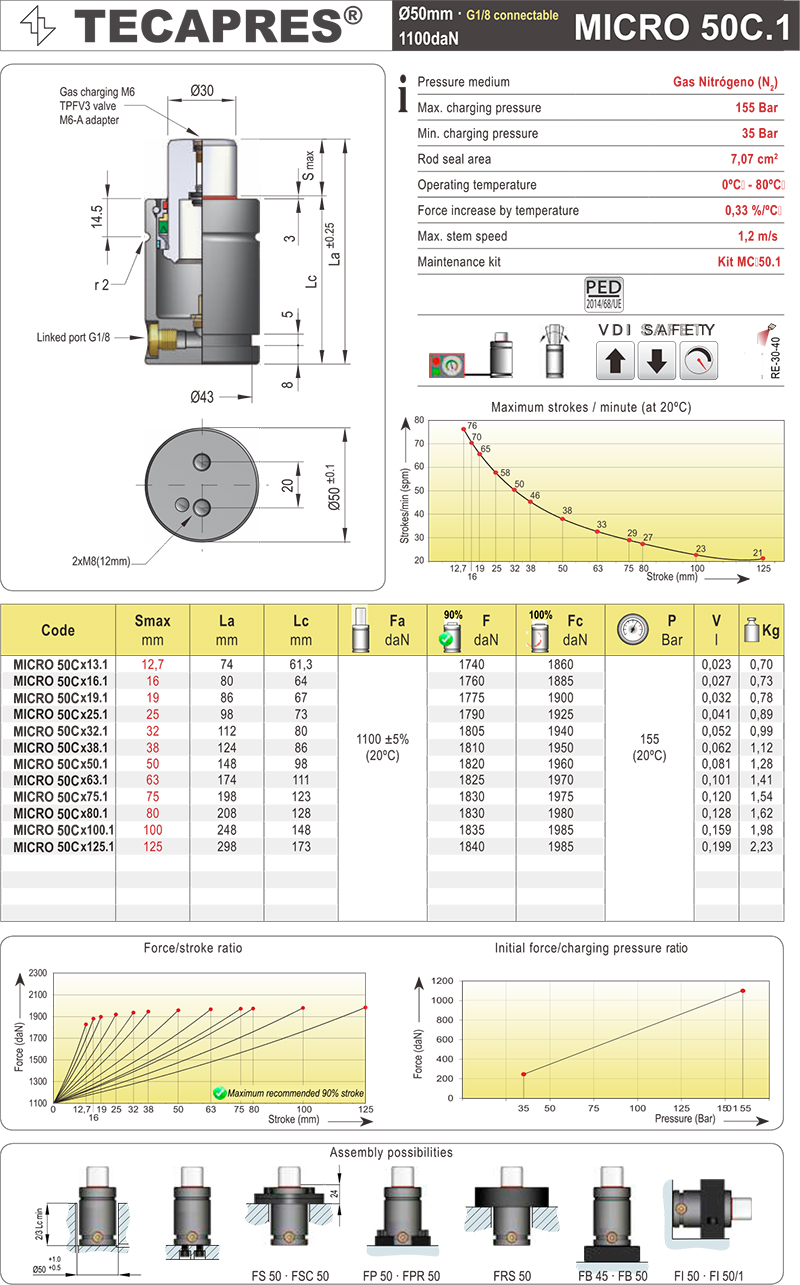 产品参数选购 TECAPRES 氮气弹簧 MICRO 50C