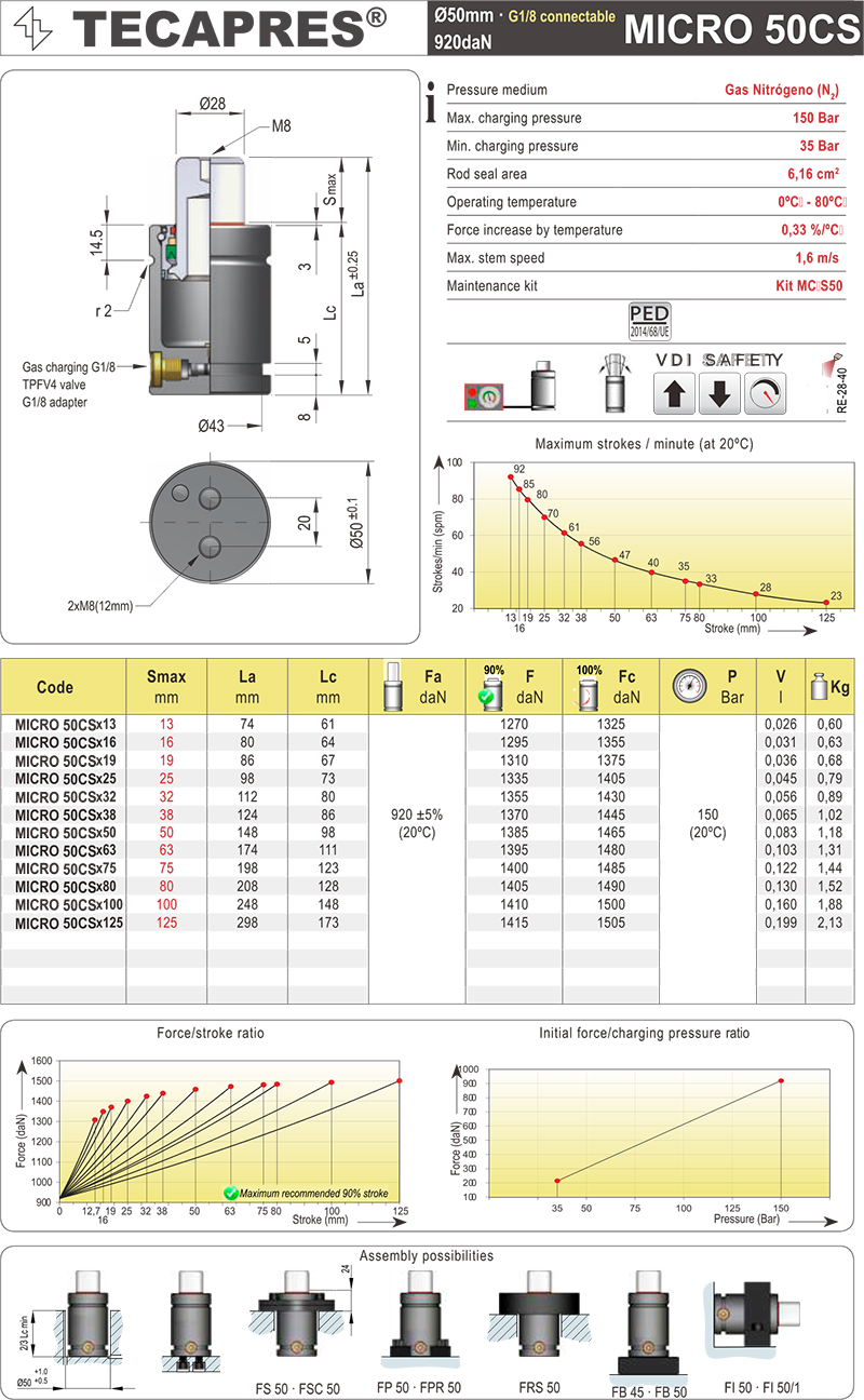产品参数选购 TECAPRES 氮气弹簧 MICRO 50CS