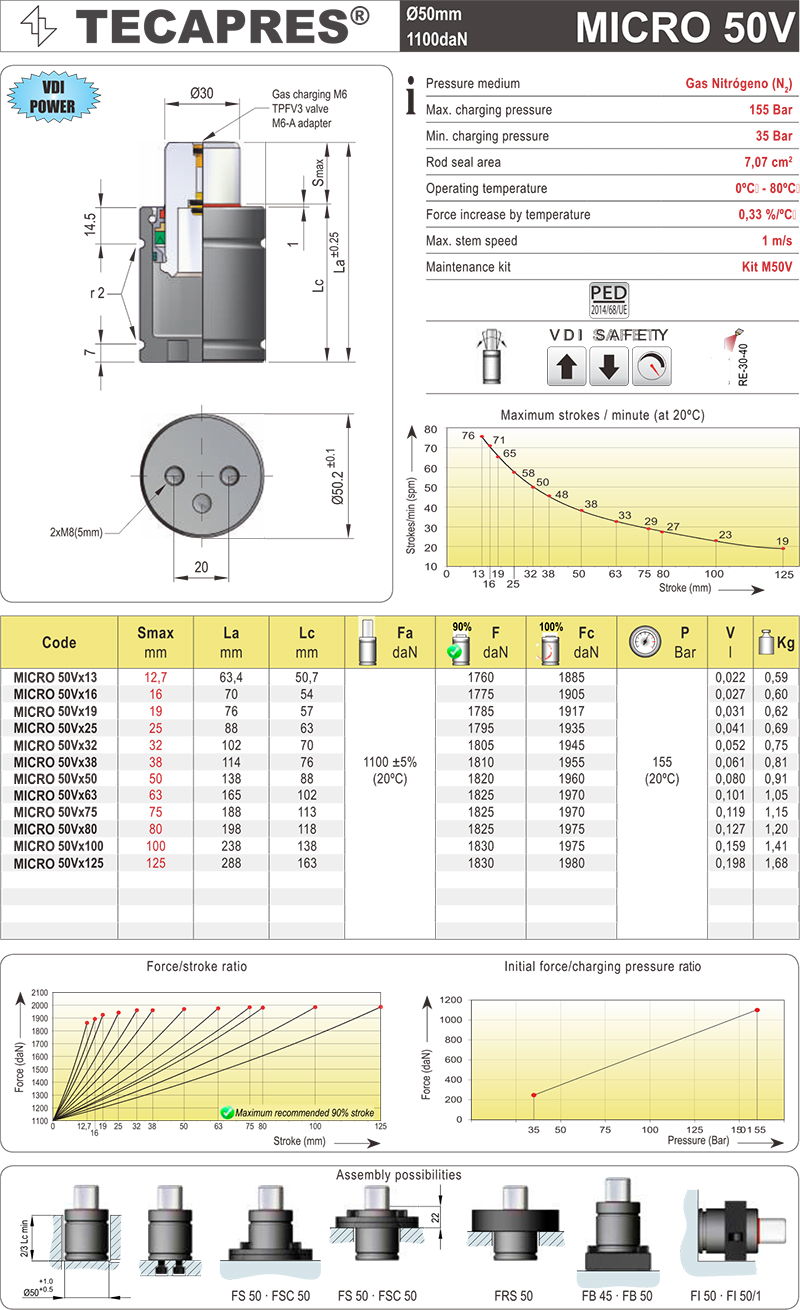 产品参数选购 TECAPRES 氮气弹簧 MICRO 50V