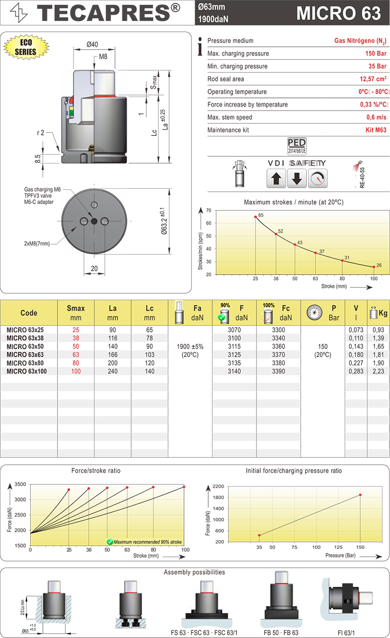 产品参数选购 TECAPRES 氮气弹簧 MICRO 63
