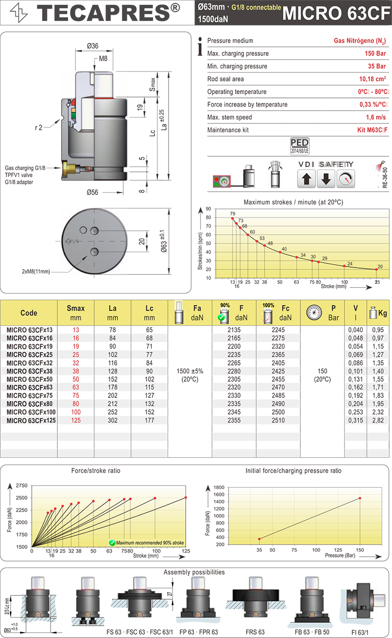 TECAPRES 氮气弹簧 MICRO 63CF