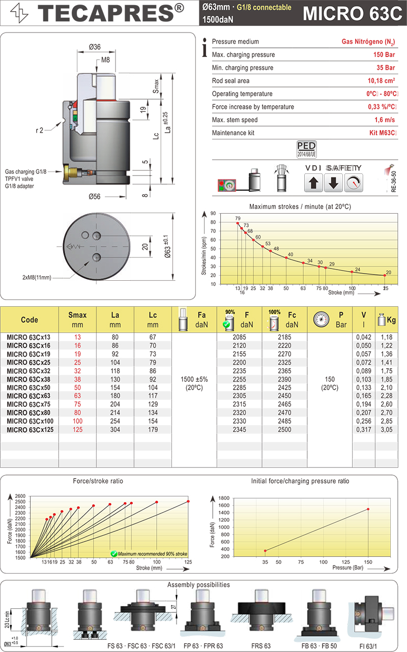 TECAPRES 氮气弹簧 MICRO 63C